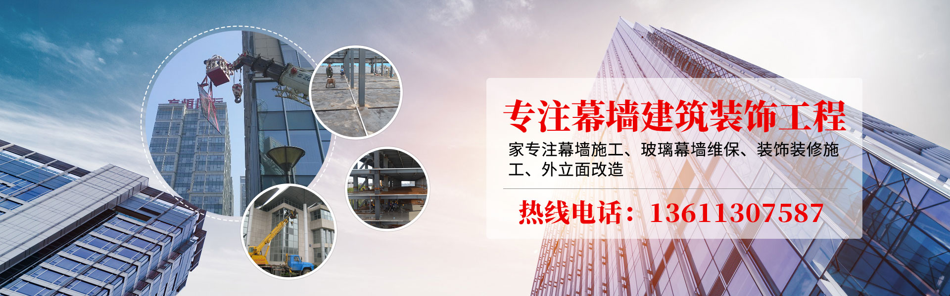 玻璃幕墻、鋁板幕墻、裝飾裝修、門(mén)窗工程、外立面改造工程、玻璃幕墻維保。